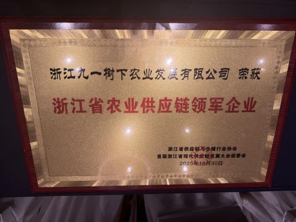 10月30日,在首届浙江省现代供应链发展大会上,九一树下凭借其在农业供应链,尤其是在冷链技术领域的实践与成效,荣膺“浙江省农业供应链领军企业”称号。这一荣誉是对九一树下行业地位的肯定,更是对其“守护食材本味”使命的高度认可。
